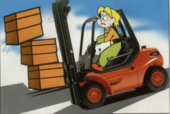 如果駕駛叉車越過地面上的物體、或經(jīng)過坎坷不平的地面、多洼地的場所,或者撞擊到頂部的物體、或者碰撞其他的物體,都可能引起叉車的傾翻。
